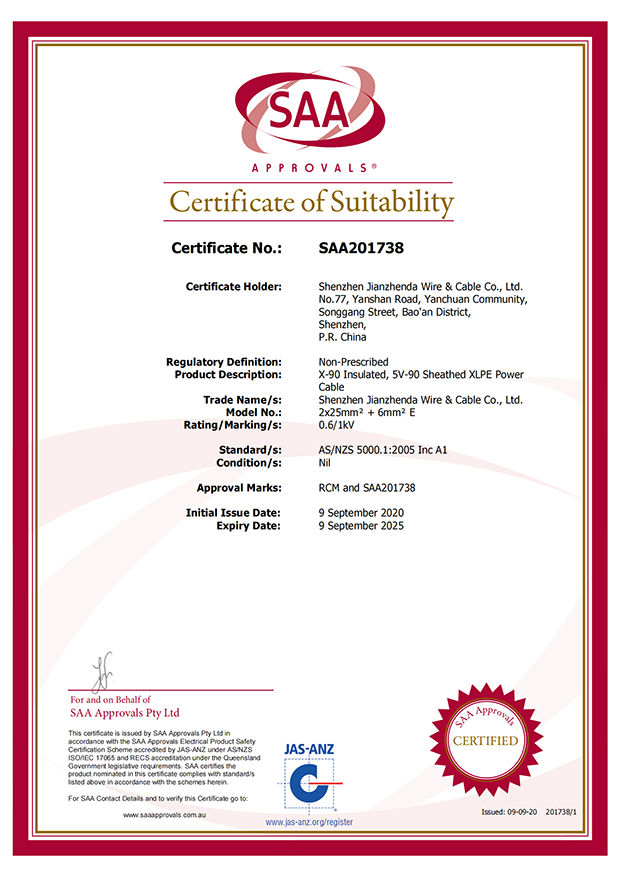 深圳建圳達(dá)電線電纜有限公司,成立于2000年,是一家電線電纜制造商,我們通過了世界各地不同市場的多數(shù)認(rèn)證,如:CCC、RoHS、CB、SAA、TUV、VDE、PSE、BPS、UL、CSA。我們根據(jù)定制產(chǎn)品不斷更新新的認(rèn)證。經(jīng)過數(shù)十年的發(fā)展,我們與來自世界各地的客戶建立了長期的合作關(guān)系。我們曾經(jīng)是菲律賓機(jī)場,,柬埔寨的電力站,美國的醫(yī)院,工廠,埃塞俄比亞的水電站項(xiàng)目。我們是一家值得信賴的電線供應(yīng)商。